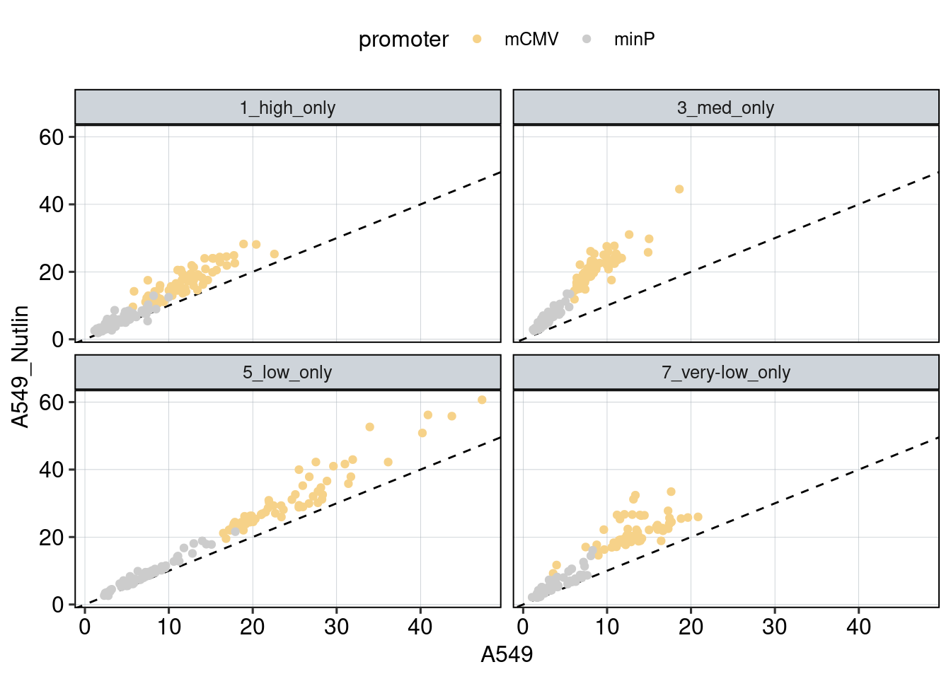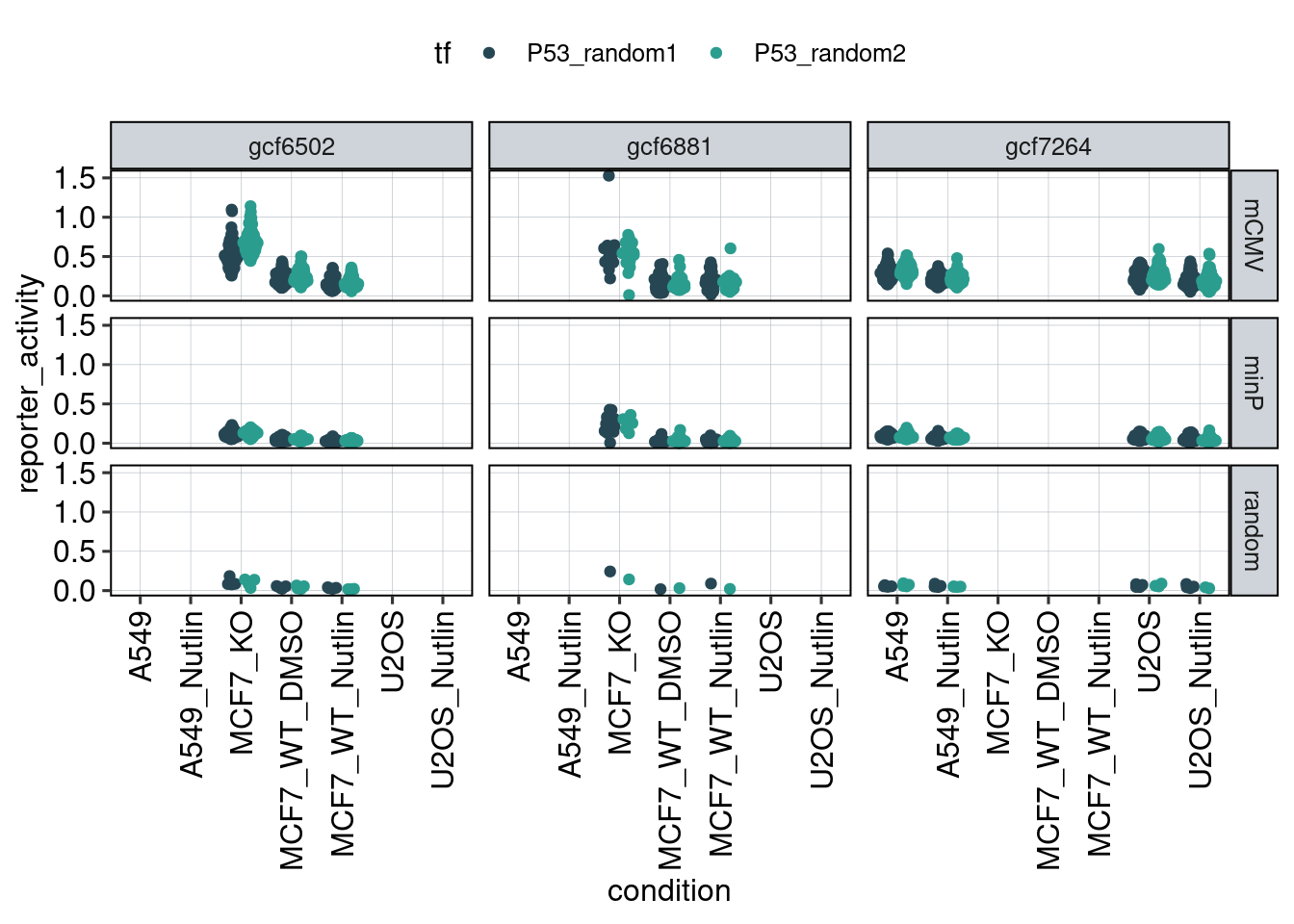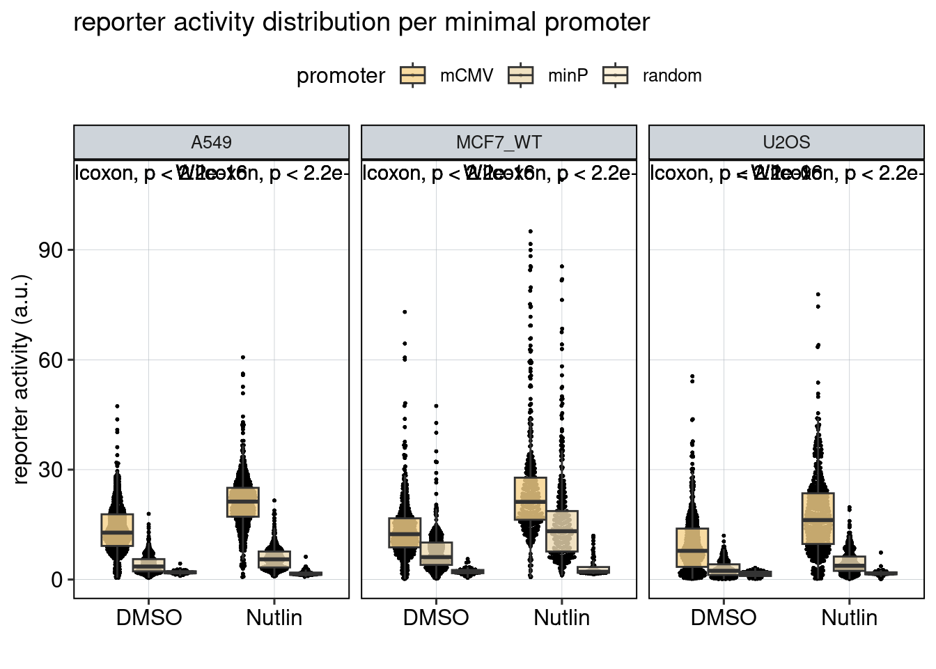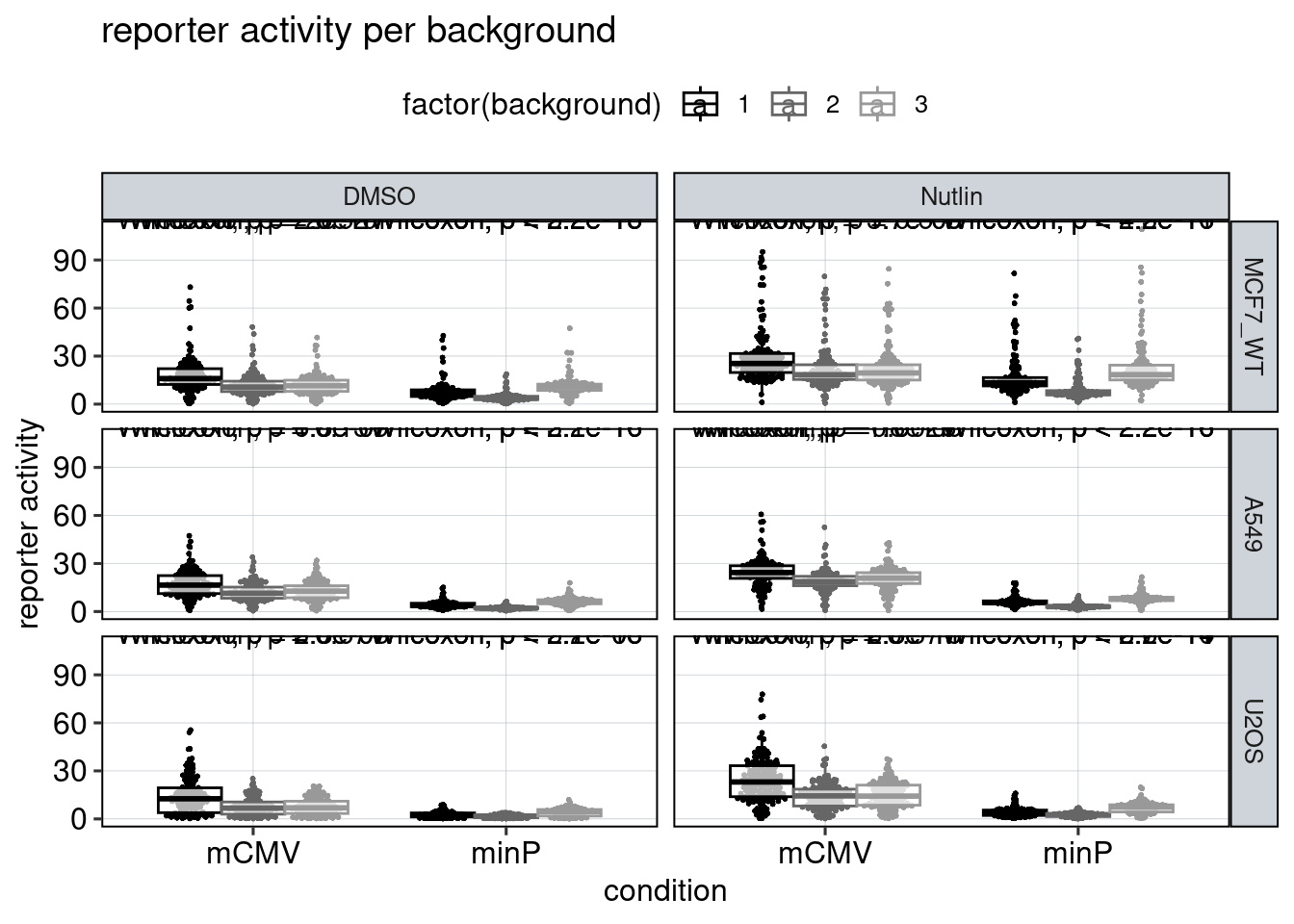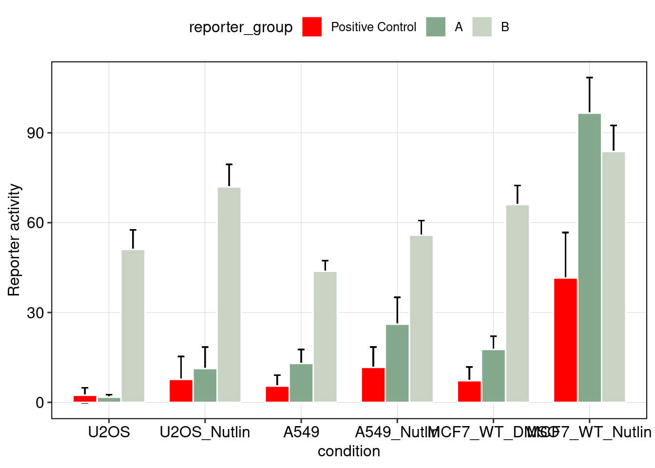 ~6,000 barcoded TP53 reporters were probed in MCF7 TP53WT/KO cells and stimulated with Nutlin-3a. I previously processed the raw sequencing data, quantified the pDNA data and normalized the cDNA data. In this script, a detailed dissection of the reporter activities will be carried out to understand how TP53 drives transcription and to identify the most sensitive TP53 reporters.