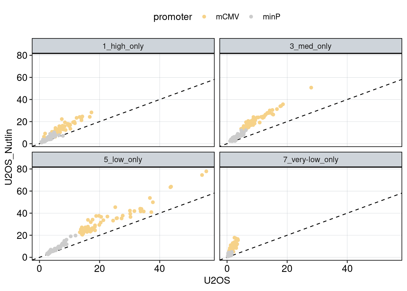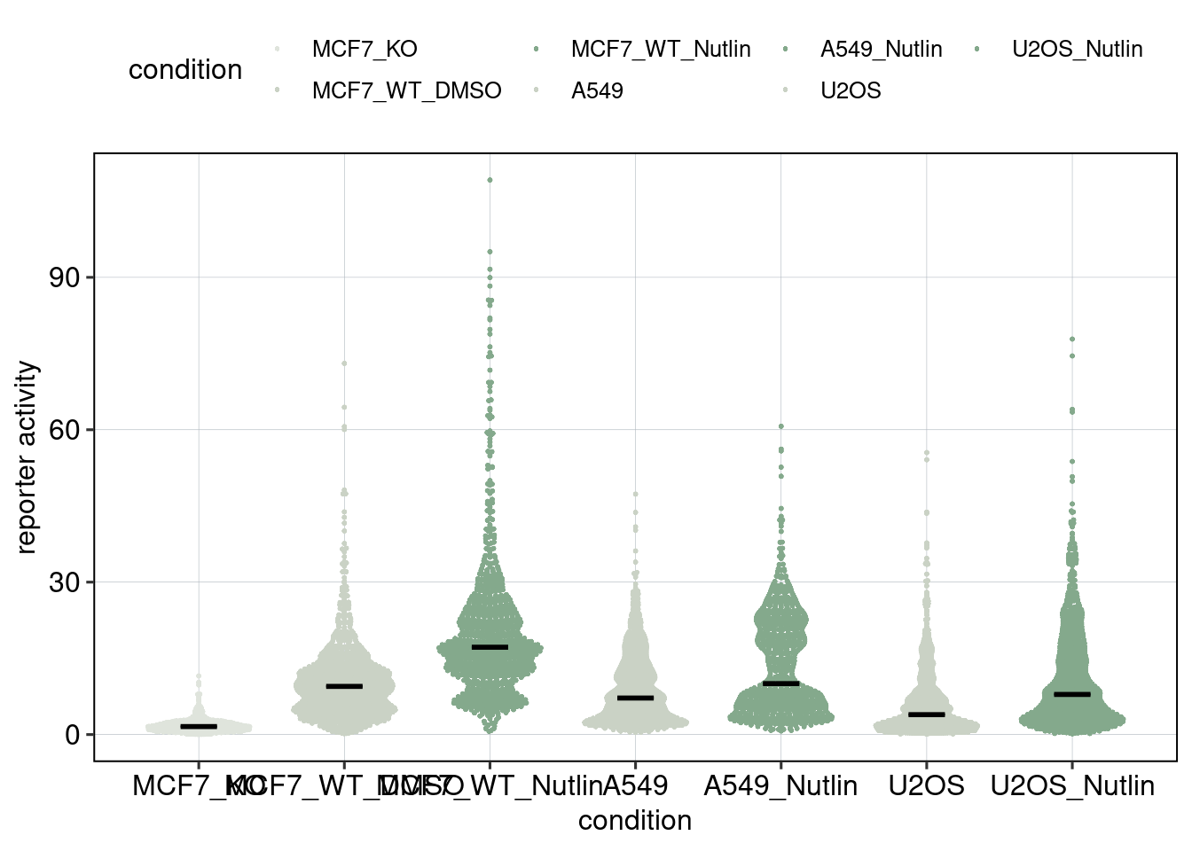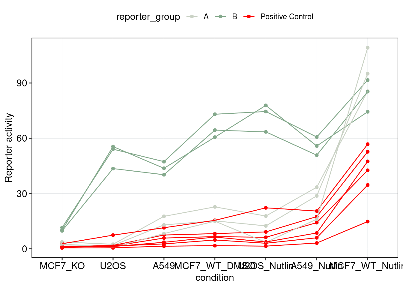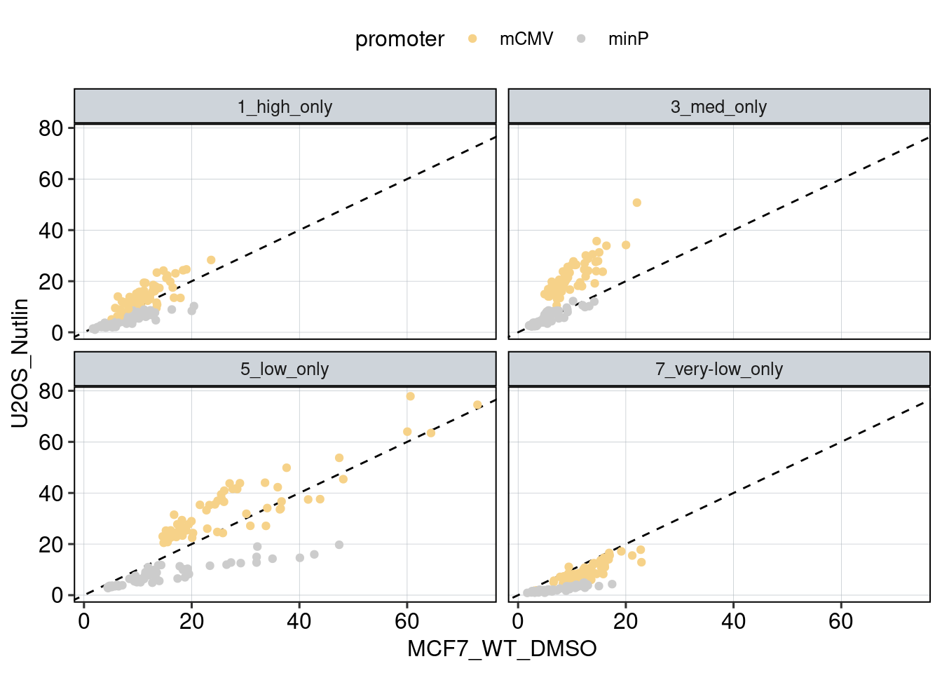 ~6,000 barcoded TP53 reporters were probed in MCF7 TP53WT/KO cells and stimulated with Nutlin-3a. I previously processed the raw sequencing data, quantified the pDNA data and normalized the cDNA data. In this script, a detailed dissection of the reporter activities will be carried out to understand how TP53 drives transcription and to identify the most sensitive TP53 reporters.